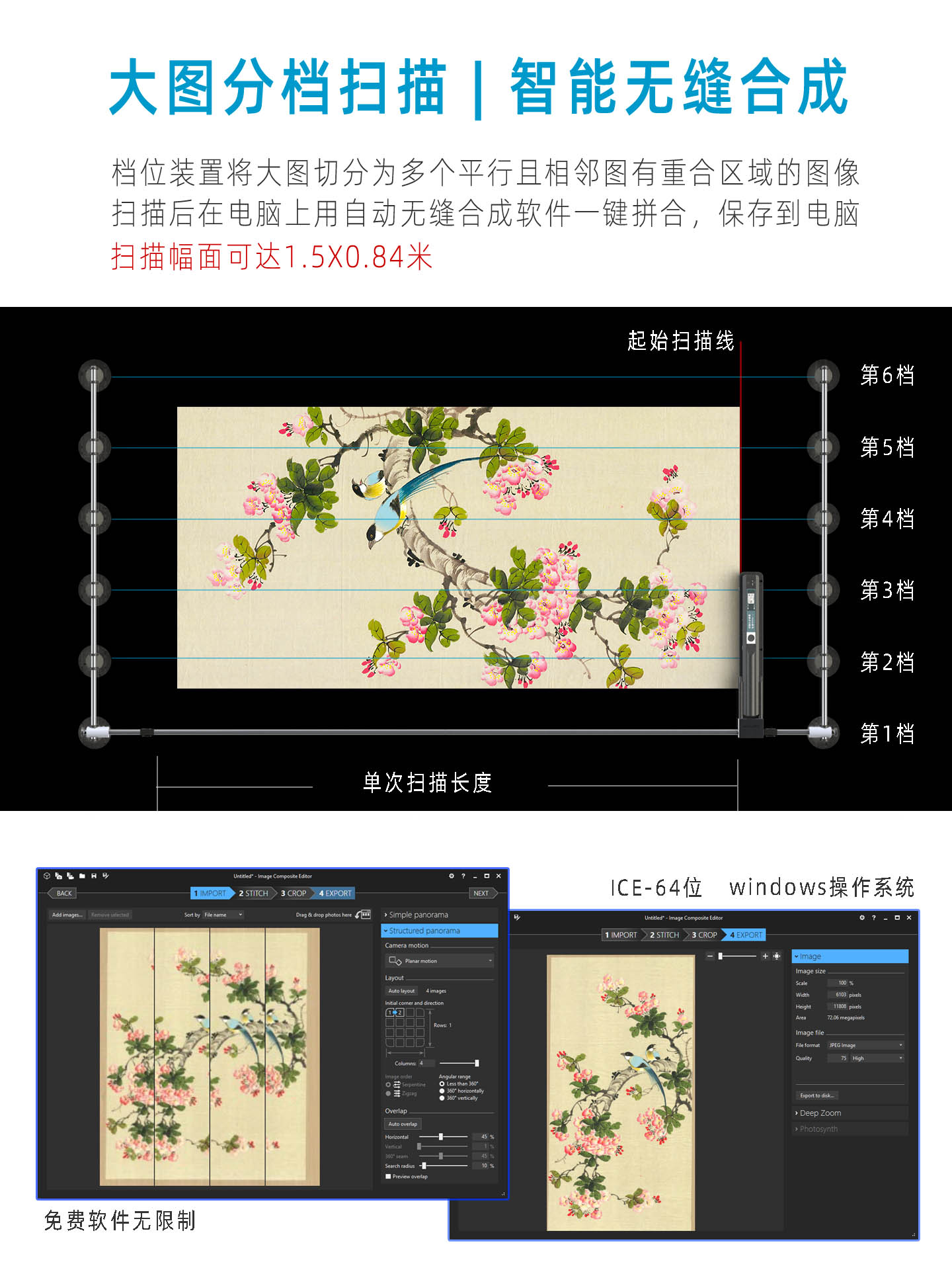 森鸟扫描仪A0W电动轨道版书法字画大幅面高清图像采集