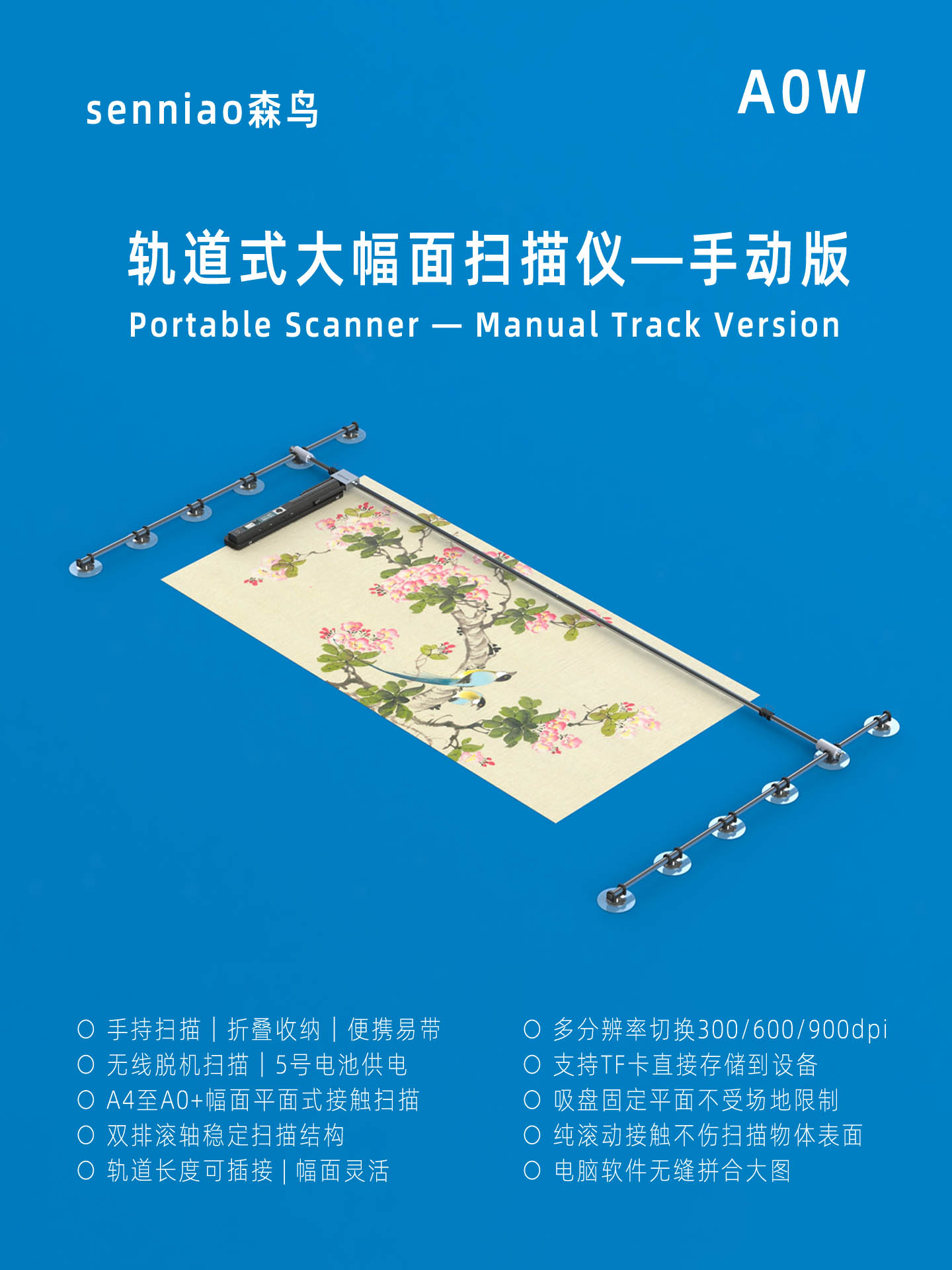 森鸟A0W手动轨道版大幅面扫描仪书法字画工程图高清采集